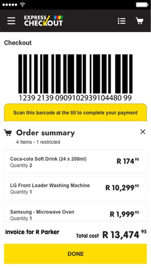 As you add each item to your trolley, scan them using the app. Once complete, press the checkout button on the app and a barcode will be produced. Go to our Express Checkout counters and show the barcode to our cashier.