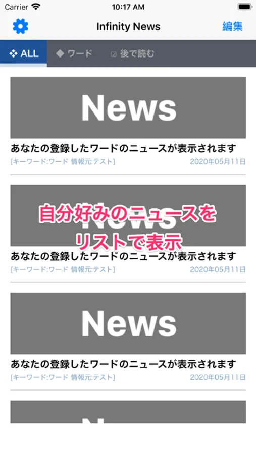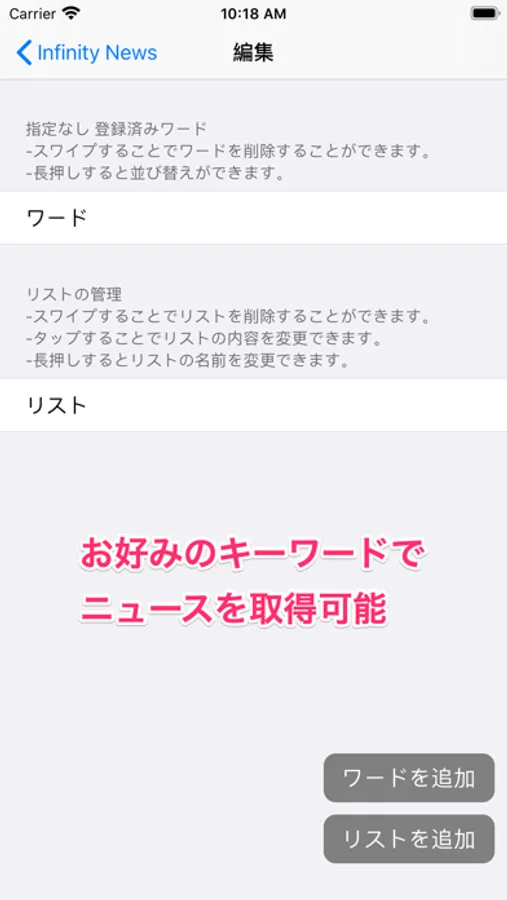 Infinity Newsはあなたの知りたいキーワードでニュースを取得できるアプリです。