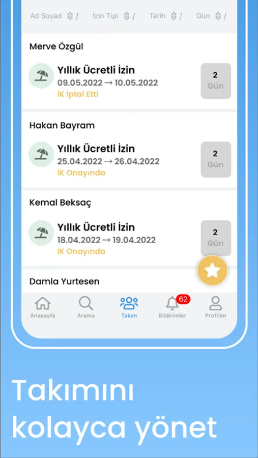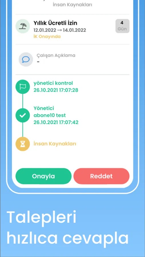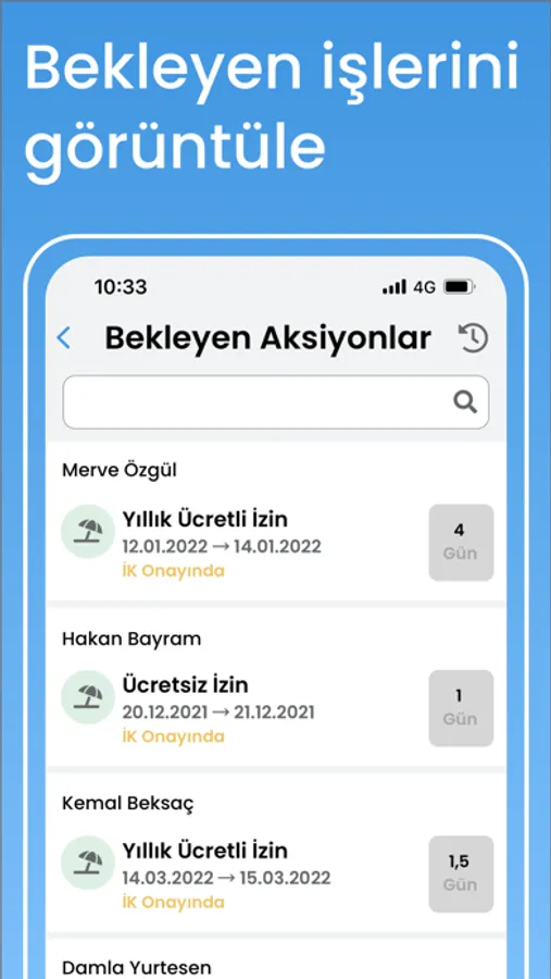 Employees can view new employees who have just started work and have a birthday, and they can access their upcoming actions, requests for approval and the actions they need to take from a single place. Approval flows of request processes on the system can be customized. During permisson, overtime and training processes, the process can be followed by sending e-mails and notifications. Employee information, leave, training and debit records to be kept on the system can be created or updated with excel.