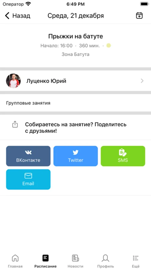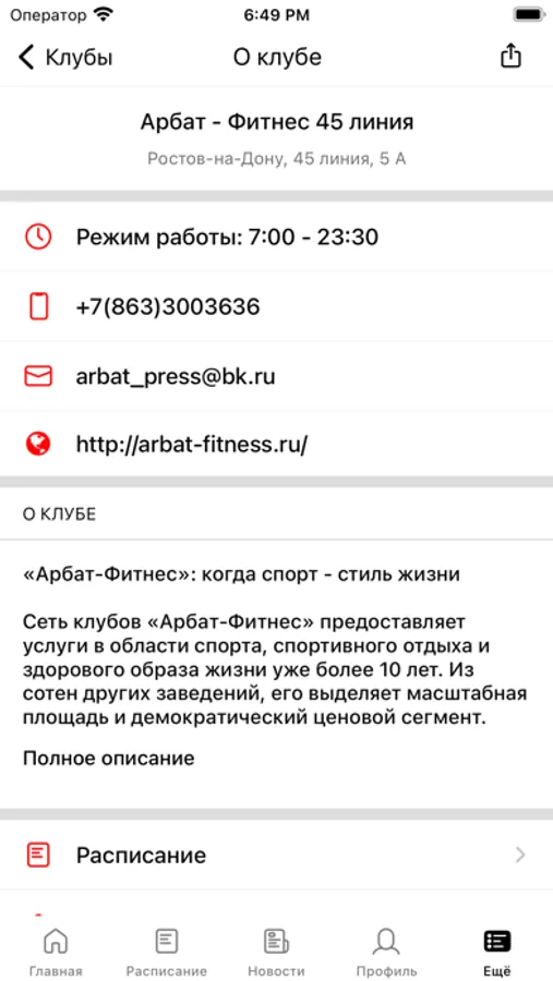 С помощью приложения вы можете следить за новостями, расписанием клубов, оперативно получать информацию об изменениях в расписании и специальных предложениях, узнавать о новых акциях, записываться на тренировки, смотреть фотоотчеты, писать отзывы, смотреть прайс лист, смотреть информацию о команде клубов, иметь личный кабинет, и ставить отметки в своих занятиях.
