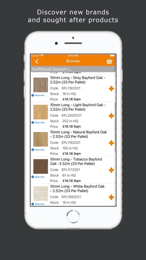 Once registered, you can browse our product listings or search for products by product code, by description or by scanning a barcode with your device’s camera. Quickly and easily browse our stocklist availability, place orders and receive special promotions and discounts, all from your smartphone or tablet.