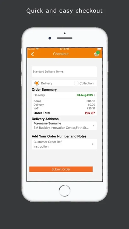 4. Place your order, then click and submit (partial orders can also be saved in the cloud to finish at a later date, on any compatible device)