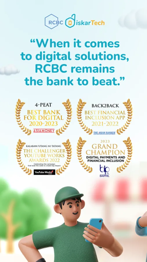 RCBC DiskarTech is powered by RCBC, the most awarded and fastest-growing challenger bank hailed as the Philippines' Best Bank for Digital (2020-2022) by Asiamoney, Best Financial Inclusion App by the Asian Banker, and Grand Champion for Digital Payments and Financial Inclusion by the Bankers Institute of the Philippines.