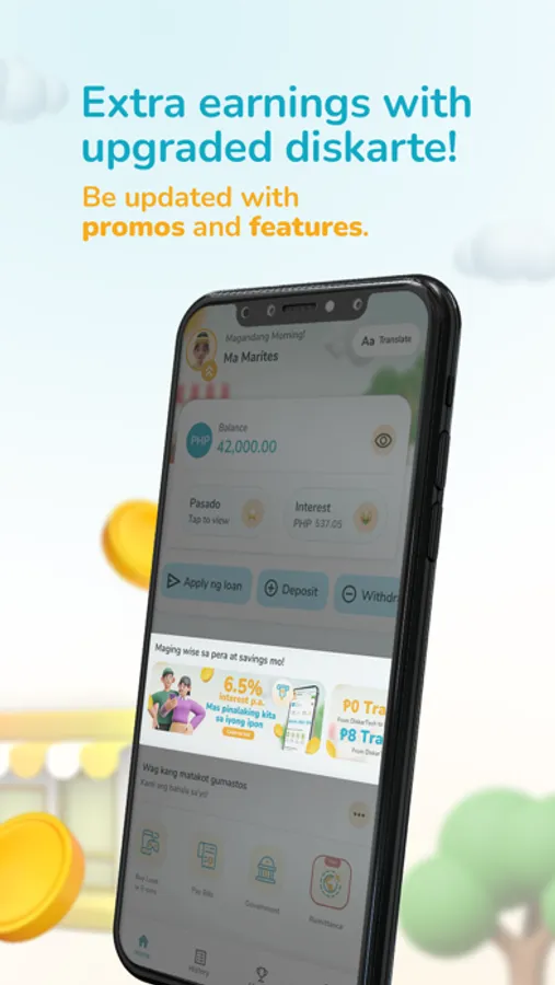 ● Use the QR Ph facility of the app for person-to-person (P2P) transactions to DiskarTech or any QR Ph-participating financial service provider