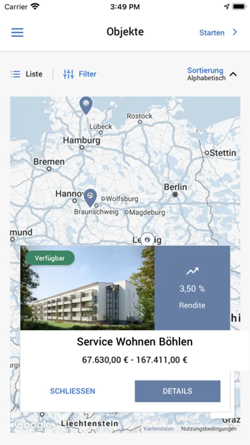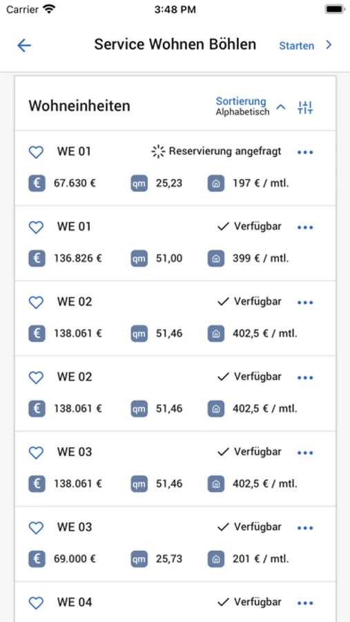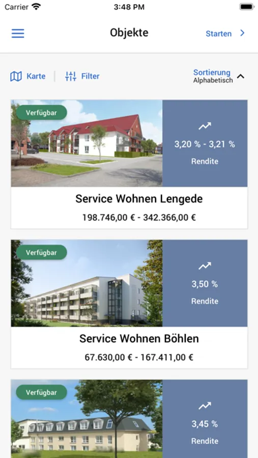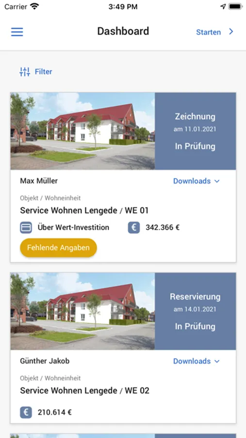 + Objektübersicht mit live Verkaufsstand