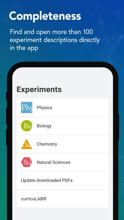 • Completeness – Find and open more than 100 experiment descriptions directly in the app