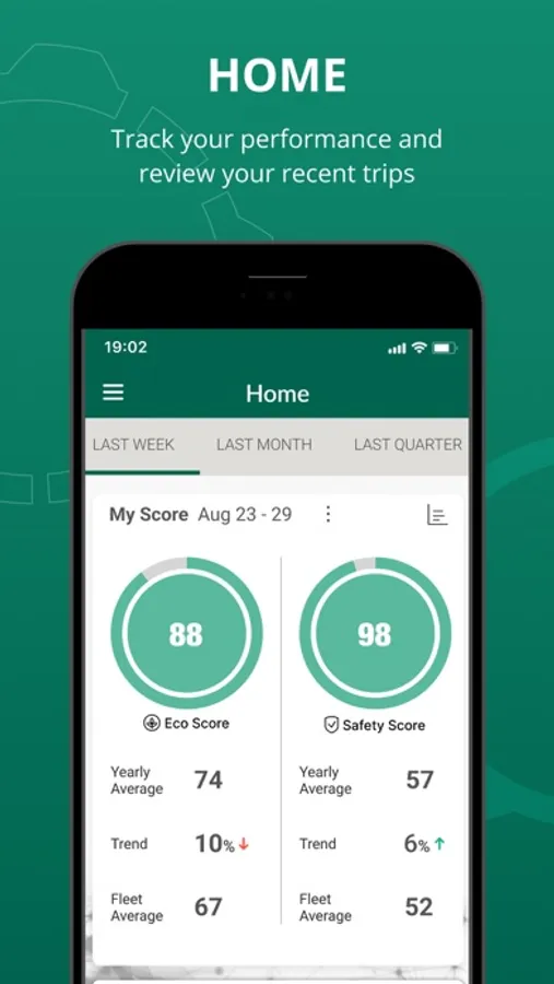 Powerfleet Driver enables drivers to review their trips and monitor their safety and eco performance.