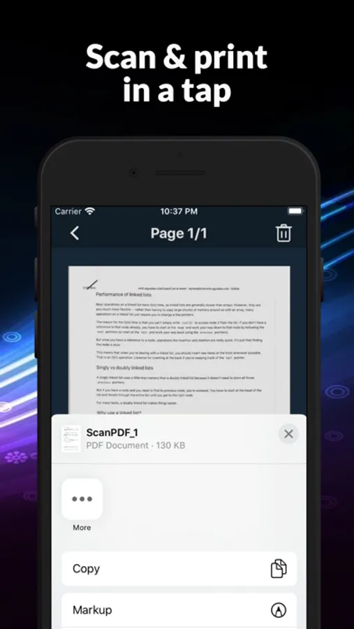 Use your iPhone or iPad to scan and print any written, printed, or graphic material, including: