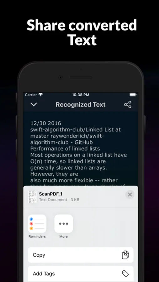 * Convert your scans into text with OCR (Optical Character Recognition) technology with this best phone scanner app.