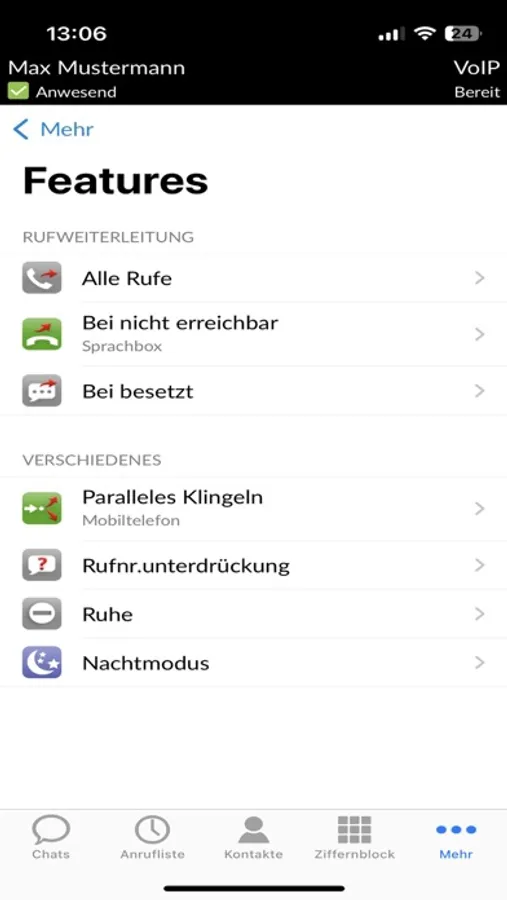 • Einstellungen von Rufweiterleitungen, Ringrufen, Do Not Disturb-Modus usw. verwalten