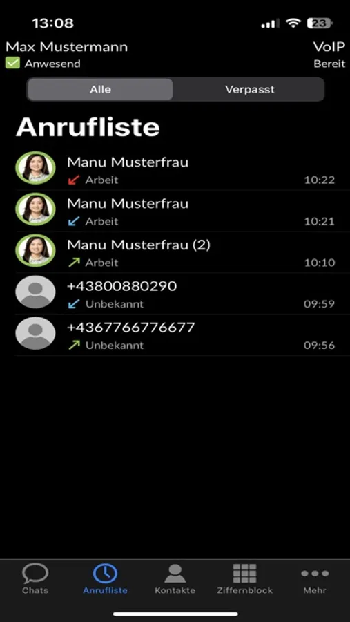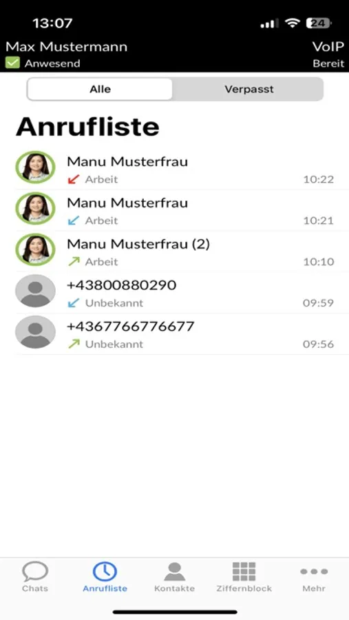 • Zugriff auf die zentrale Anrufliste (inkl. Filteroption)