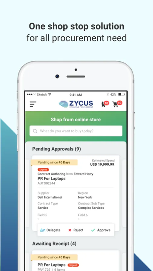 Access your Zycus’ Source to Pay information and conduct procurement activities on the go with the Mobile App. Shop with the online store, action approval requests, get instant notifications and experience Zycus’ enterprise features on your mobile. The Mobile App seamlessly syncs with your Web Application.