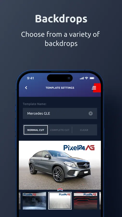 • Backdrop image that will be used as the background for the cut-out vehicle