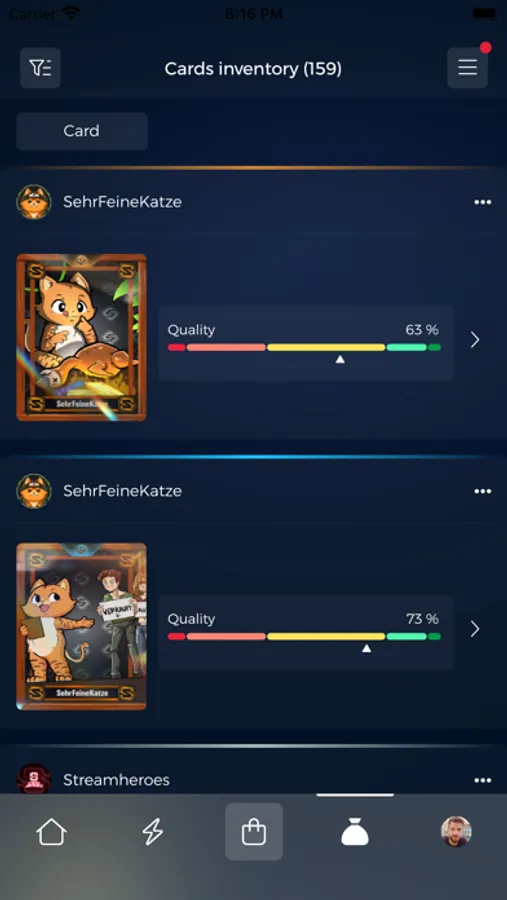 + Buy cards and support your streamer.