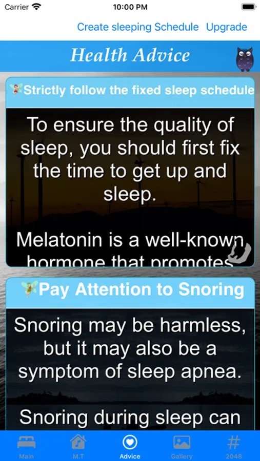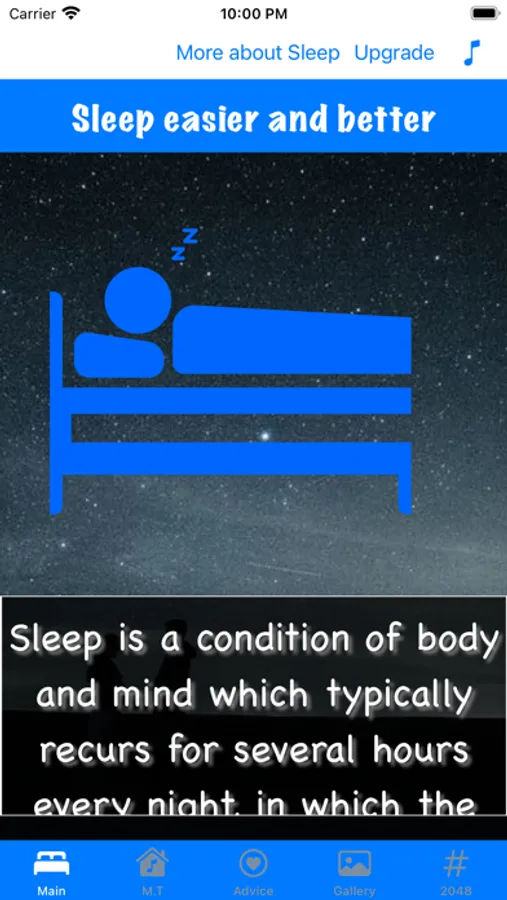 Our app features relaxing music to help soothe you into sleep, as well as a sleep schedule to help you monitor your sleep patterns and improve your overall sleep quality.