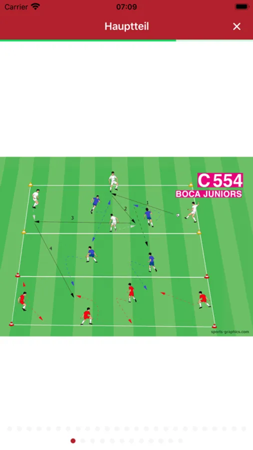 - Drei Trainingsmasken: Kinderfussball (G-F-E), Juniorenfussball (D-C-B-A), Kondition-Ermüdungsresistenz (E-D-C-B-A)