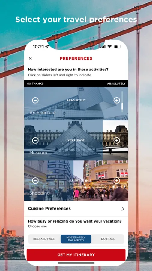 2. Create Personalized Trips: Whether a hopeless romantic or history buff, create personalized itineraries powered by SmartNomad's sophisticated AI (Artificial Intelligence) + Human Intelligence (HI) system.