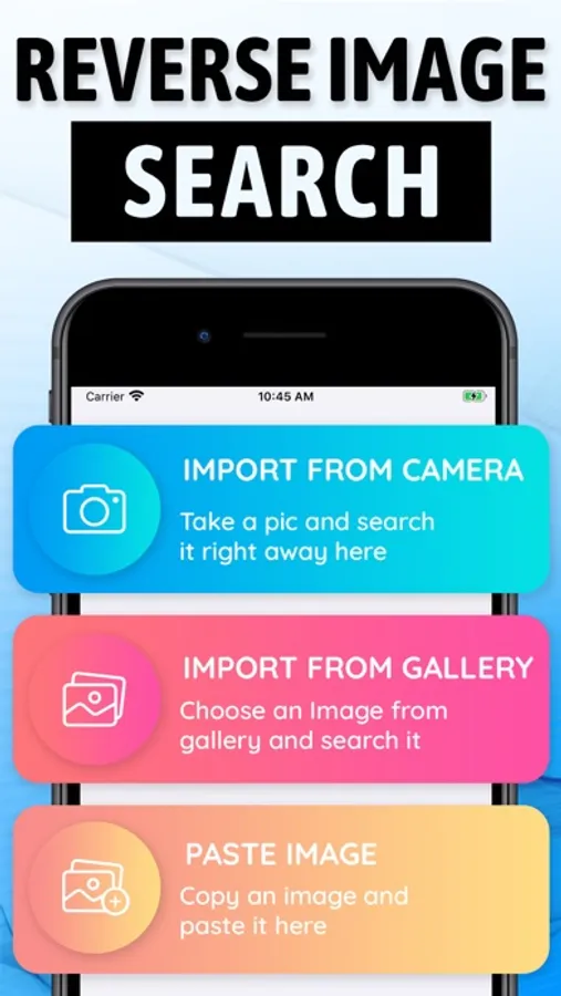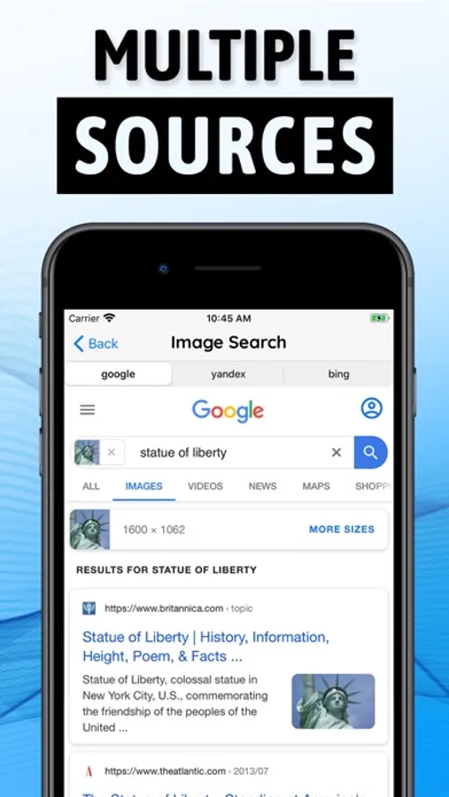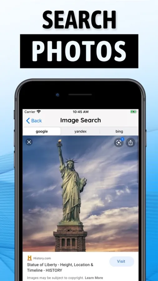 “Image Search” allows you to search images via Google Image Search,Bing Image Search and Yandex Image Search. This app will help you to check if someone photos are real or just a copy-paste from the web.