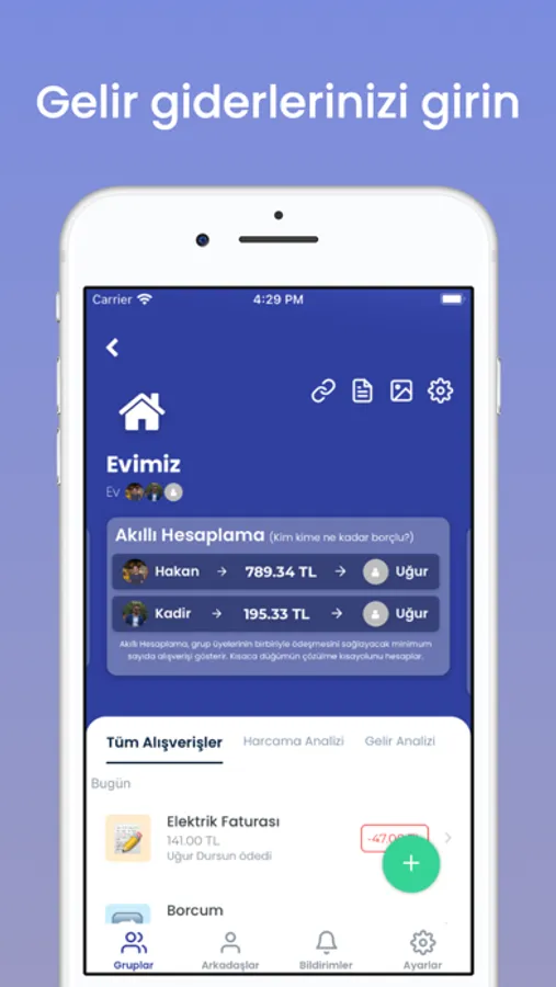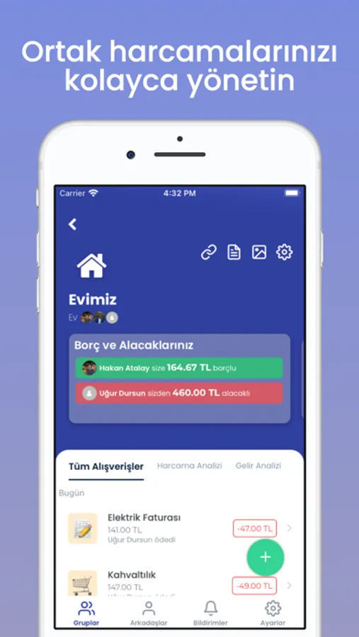 Ortak Hesap ev arkadaşınızla, iş arkadaşınızla, iş ortağınızla, eşinizle ve benzeri tüm ortak para kullanımında olduğunuz kişilerle hesapları kolayca takip etmenizi sağlar.