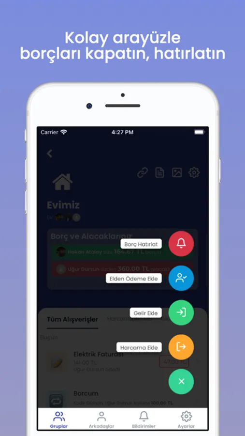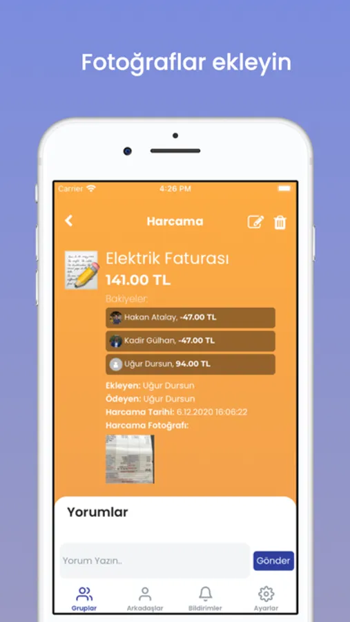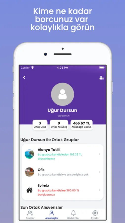 Çok basit ve kullanışlı bir arayüze sahiptir. Kayıt olması kolaydır. Arkadaşlarınızı kullanıcı adlarıyla kolayca ekleyin. Ortak hesap oluşturun ve harcamalarınızı girin. Ortak Hesap sizin için hesaplamaları halleder, alacak vereceklerinizi basit bir şekilde gösterir.