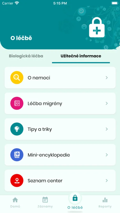 Uzamčená část je přístupná pouze pacientům, kteří v terapii užívají biologickou léčbu. Tito uživatelé mají možnost vést si aplikační deník, který jim připomene užití léku.