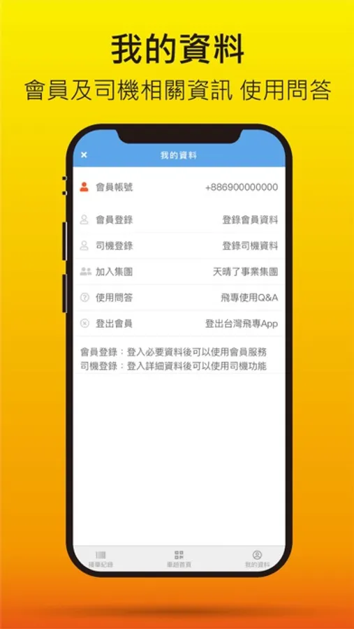 天晴飛專是天晴了事業集團中,提供司機註冊、司機接單服務的App後台,