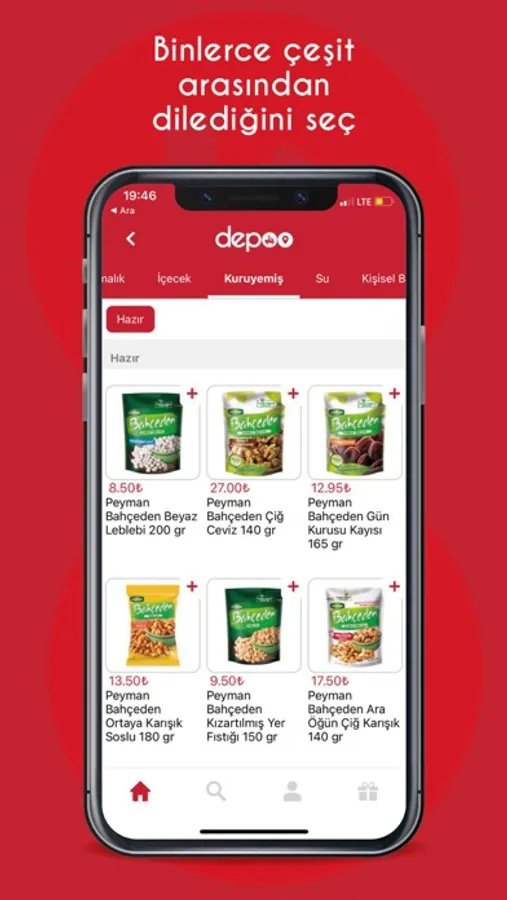 Artık market alışverişleriniz için evinizden, iş yerinizden ayrılmayın! Depoo temel gıda alışverişlerinizden manav, şarküteri alışverişlerinize kadar kullanabileceğiniz geniş ürün çeşitliliğine sahiptir. Gün geçtikçe artan anlaşmalı restoranlarımızla artık yemek siparişlerinizde de güvenle kullanabilirsiniz.