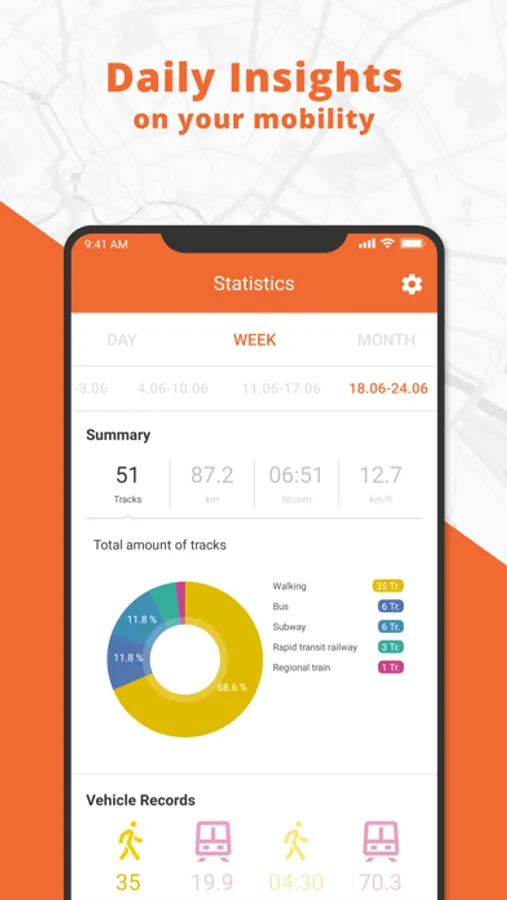 Keep an eye on your mobility. With GfK Move you have your automatic mobility log book with you all the time.