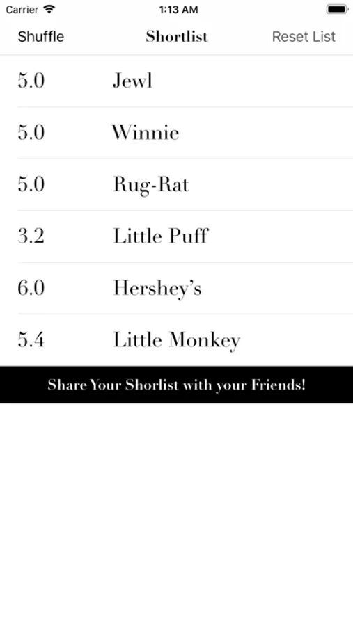 Create a shortlist of nicknames that you like. You can even rate the nicknames and share the list with your other half!