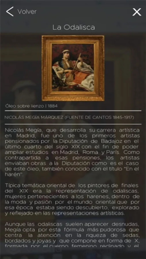La aplicación permite obtener información de las obras del Museo de Bellas Artes de Badajoz (MUBA). Compatible con 28 obras del museo, indicando en ellas si muestran información apuntando con la cámara en la obra o en un código QR personalizado. Incluye las obras pertenientes a la exposición "La pieza invitada" de la Diputación de Badajoz junto con la Archidiócesis Mérida-Badajoz.