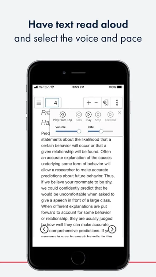 - Have text read aloud and select the voice and pace