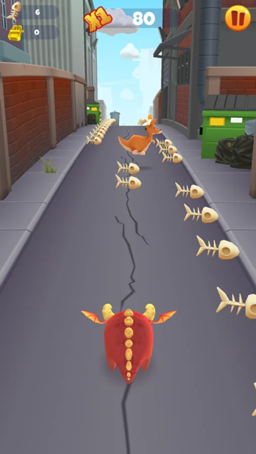 Little dragon lost in the big city, you help him escape from the pursuit of fierce dogs in the city. Try to avoid the animals and obstacles on the way.