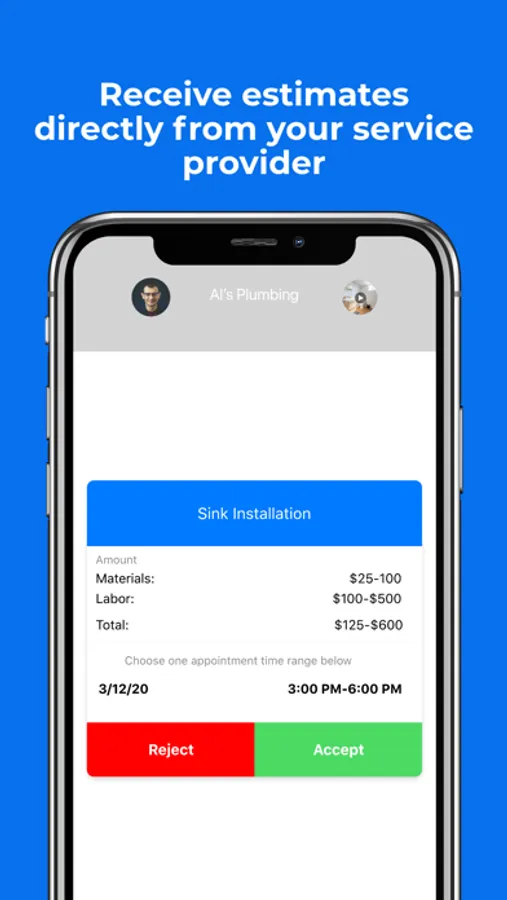Your video will get the attention of Service Providers in your area. They will look at the video, ask you some questions, and if they are qualified, they will send you an estimate right through the App.