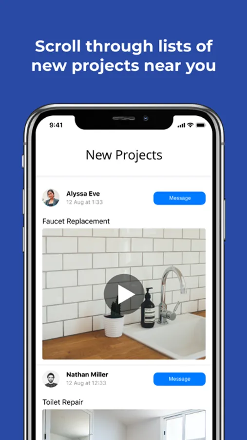 Potential customers who are looking for someone just like you are creating videos showing the project that they are taking bids on. These videos appear right on the App in the New Projects Screen.