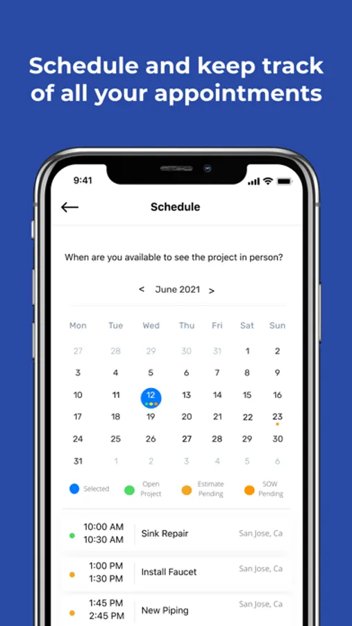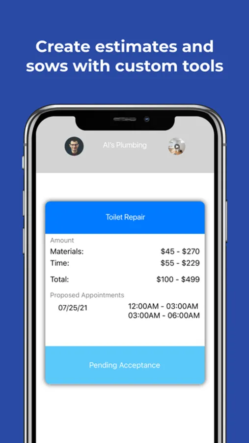 The customer will look at the Estimate and will accept the Estimate right on the App. You can schedule times to arrive to do a detailed look before you and the customer agree on the Statement of Work.
