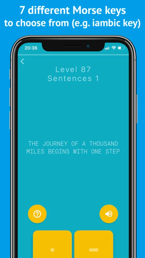 In both the receiving and sending modes, the app starts with the easiest letters (E and T) and moves to more complicated ones. Once you master all the letters, it teaches you numbers and other symbols, and then proceeds to Prosigns, Q-codes, abbreviations, words, Callsigns, phrases and sentences.