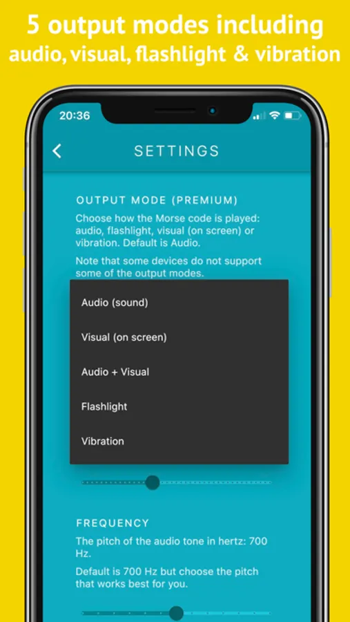- 5 output modes: audio (default), blinking light, flashlight, vibration and light + sound.