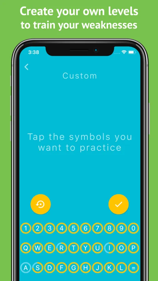 - Custom level: create your own level to practice symbols of your choice. Save your own list of symbols and load anytime.