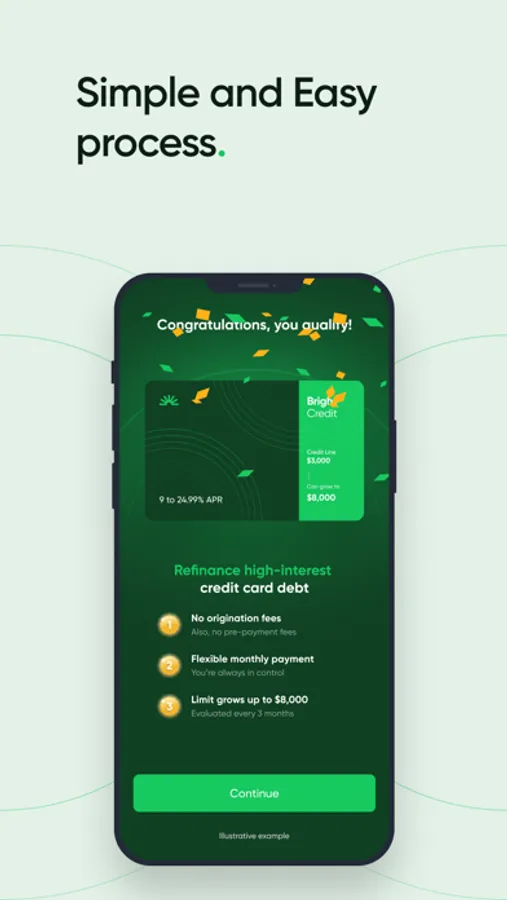 The Bright App can help you consolidate credit card balances, into a single manageable loan of up to $8,000(1). Pay it down with affordable monthly payments, and simplify your management.