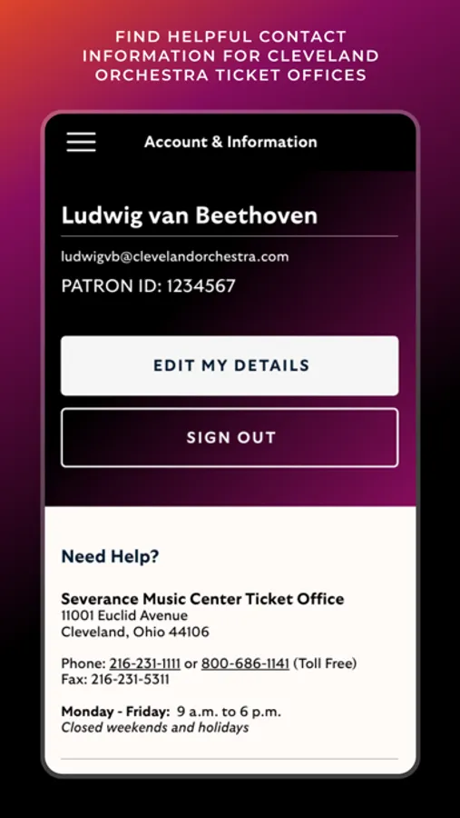 Never forget or misplace your tickets to Cleveland Orchestra performances at Severance and Blossom Music Center* again, and receive real-time updates without having to reprint your tickets.