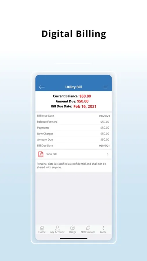 • Get real-time notifications and reminders about your account and service via email, text, push notification or automated phone call.