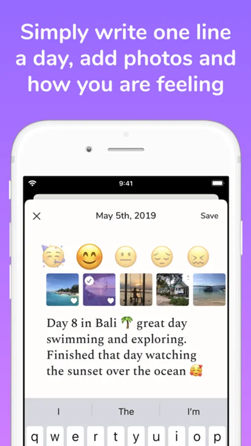 They say a picture is worth a thousand words, Diem helps you memorialize your life with photo entries. Diem automatically displays photos from your library to easily add to your daily journal entries.