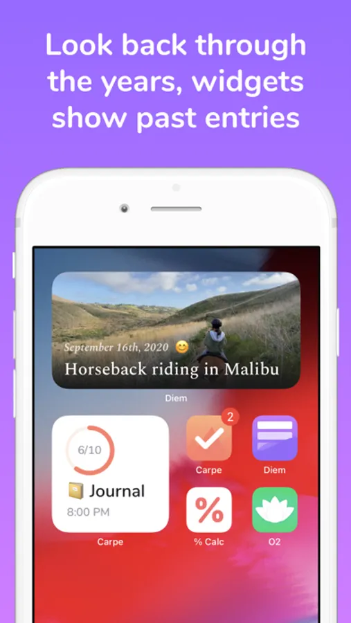 Add the beautiful Diem iOS Home Screen widget to see journal entries from the day, throughout the years.