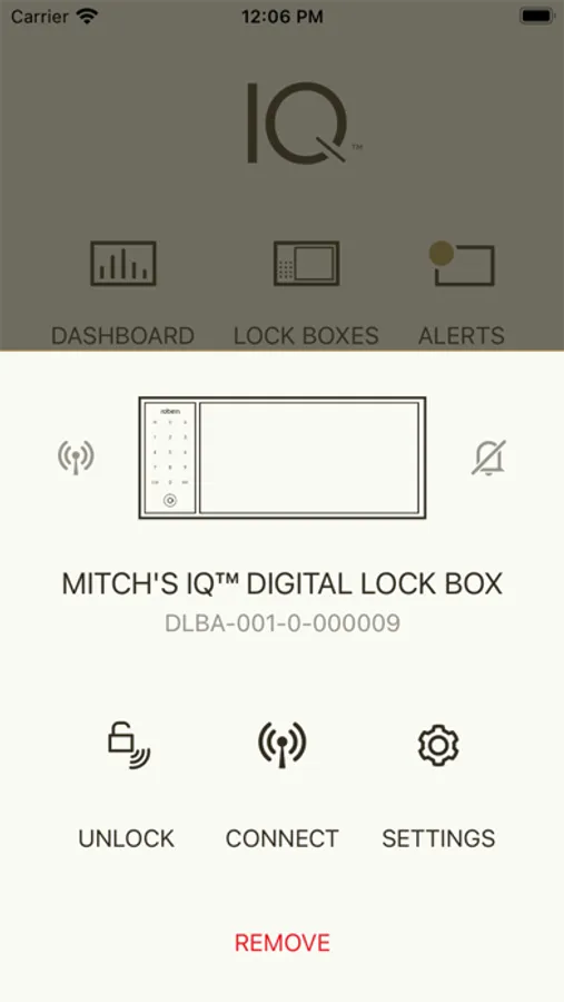 - Remotely unlock your IQ Lock Box to grant access to family while away
