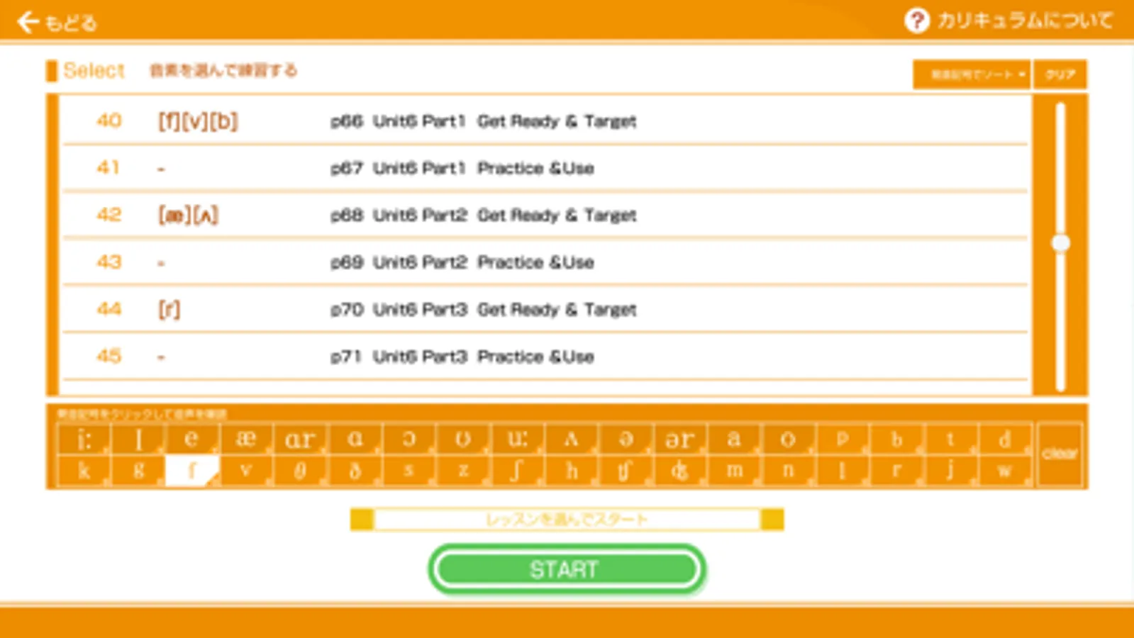 ◇発音記号からレッスンを選択する事もできます。