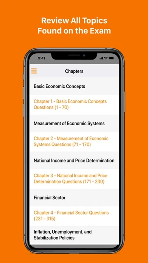 This free application includes all questions in Chapter 1 - Basic Economic Concepts (1-70). The remaining 430 questions are available through an in-app purchase of $15.99.