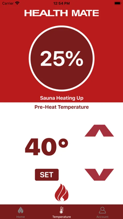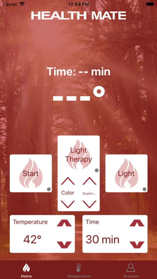 The app will ask to find your sauna to connect via Bluetooth. It will then prompt a login so it will remember your sauna. All privacy rights are protected. App will prompt if you want to turn on your sauna and choose its ideal temperature. Once chosen, the dial will render and keep progress until the sauna is at temperature. Timer is then set and will continue once prompted. Sauna will automatically sign off once timer elapses. Change of timer is changeable at anytime. Other button included is chromotherapy which changes the light feature to change to red, blue, purple, green, orange, and yellow. Each color has its own benefits for color light therapy.