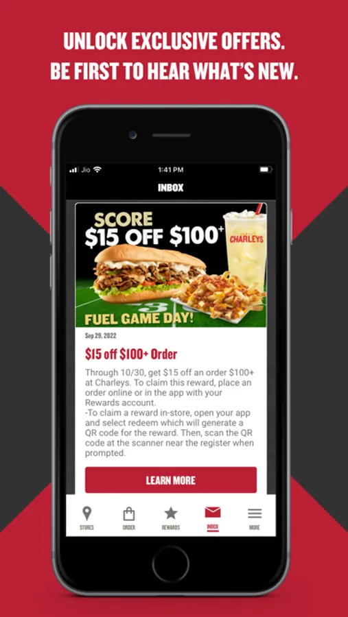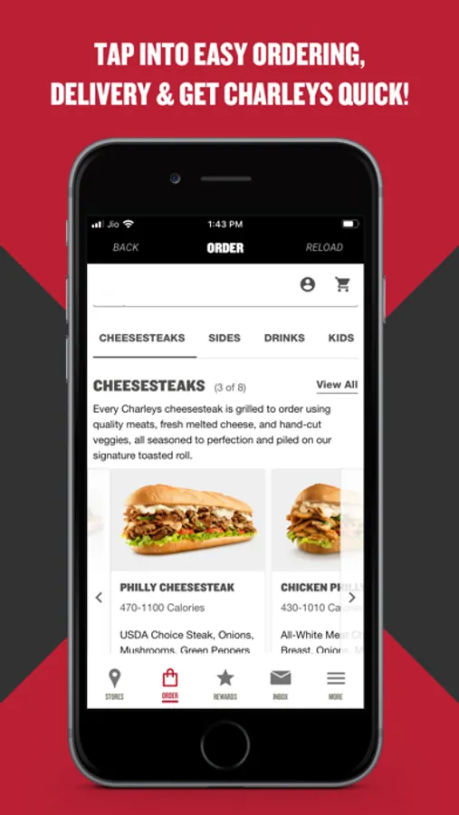 Charleys fans – take your Cheesesteak love to the next level with Charleys Rewards. Get the best deals on your favorite menu items, earn rewards and points every time you order, and be the first to know about exclusive offers and new menu items. PLUS, place orders on-the-go for delivery or pickup right in the app!