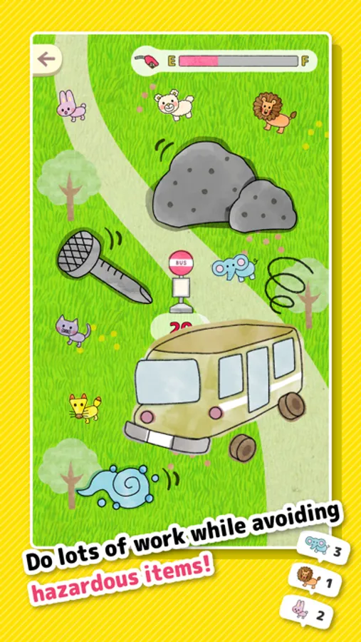 2. In the Bus stage, drive up to your animal friends to pick them up in your bus, then drop them off at the bus stop in the middle of the screen. Drive up to the bus stop and they'll get off.