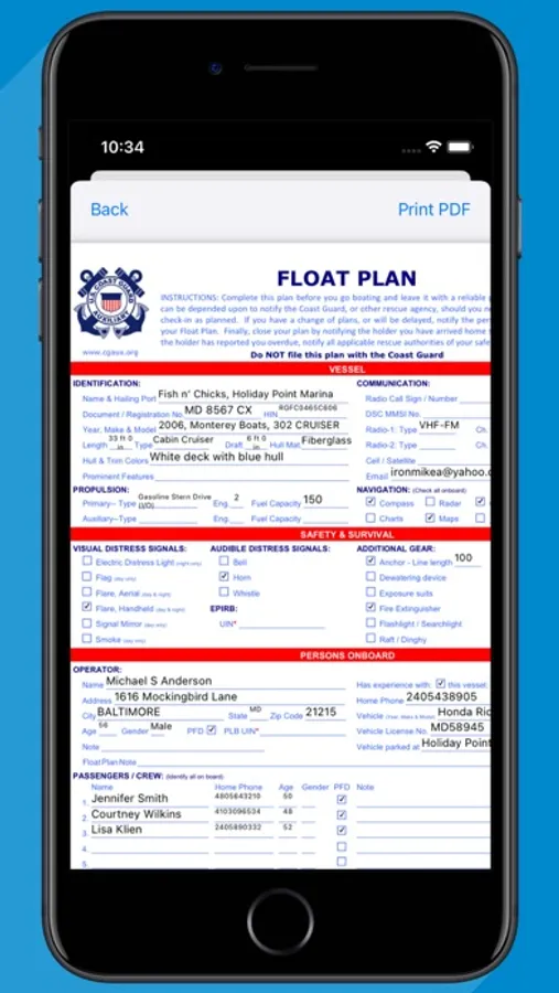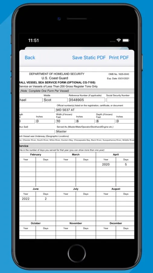 This application provides a digital log for capturing relevant trip details eliminating the need to keep a log book. Additionally, the application can be used to plan trips, view area marinas and amenities, measure routes and create and email float plans using the data entered. Lastly, use the application to create verification of sea service required as a part of the application process for applying for and renewing a Captain's License. At your time of license renewal, populate the CG-719S (small vessel sea service verification form) with the data entered. The document can be printed, allowing it to be use along with the additional documentation required to submit to the USCG for credentialing.
